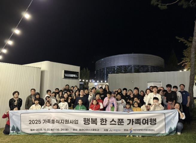 [메이저뉴스]아산시장애인가족지원센터는 23일부터 1박 2일간 파라다이스 스파 도고에서 관내 장애인 가족을 대상으로 ‘2025년 행복 한 스푼 가족여행’을 진행했다고 밝혔다.