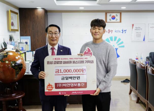 [메이저뉴스]㈜비전정보통신은 오는 30일부터 11월 2일까지 나흘간 홍주읍성 일대에서 개최되는 '홍성 글로벌바비큐 페스티벌'의 성공적인 개최를 지원하기 위해 성금 100만원을 기탁했다고 밝혔다.
