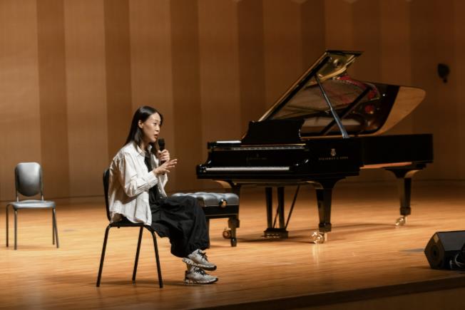 | ▲ 마스터클래스에서 고양예고 학생들의 질문에 답변하는 피아니스트 손열음 |