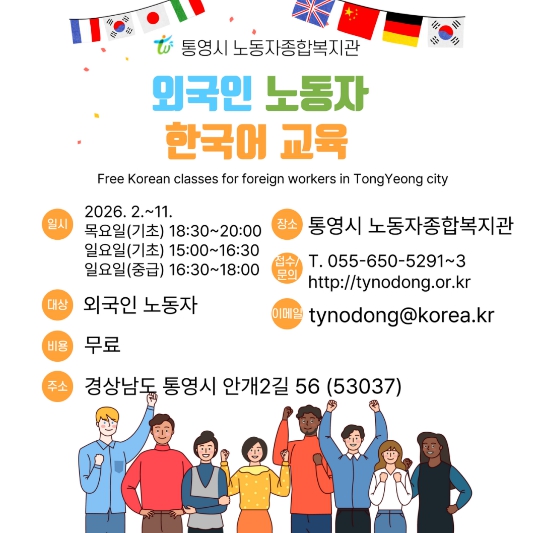 통영시 관계자는 “외국인 노동자들이 한국어 교육을 통해 일상 속 불편을 해소하고 산업 현장에서의 원활한 소통을 통해 안전사고를 예방하는 데 큰 도움이 되길 바란다”며 “앞으로도 외국인 노동자들이 우리 지역사회에 안정적으로 정착할 수 있도록 맞춤형 지원에 최선을 다하겠다”고 전했다.