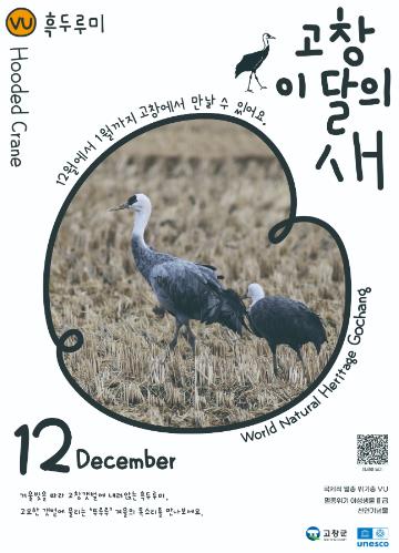 [메이저뉴스]고창군이 12월 ‘고창갯벌 이달의 새’로 멸종위기 철새인 흑두루미(학명 Grus monacha)를 선정하고 겨울철 고창갯벌의 생태적 중요성을 알리기 위한 캠페인을 진행한다고 2일 밝혔다.