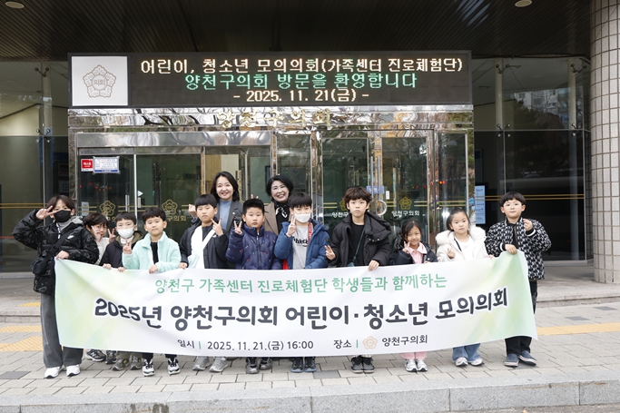 [메이저뉴스]서울시 양천구의회는 11월 21일 오후, 본회의장과 상임위원회실에서 양천구 가족센터 진로체험단 소속 초등학생 14명을 대상으로 ‘2025년 어린이·청소년 모의의회’를 개최했다.