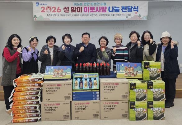 수원시 영통구 영통1동 단체장협의회, 설 맞이 이웃사랑 나눔 전달