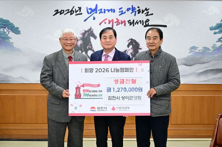 [메이저뉴스]김천시는 1월 19일 상이군경회 김천시지회(회장 선종두)로부터 희망2026나눔캠페인 성금 127만 원을 기탁받았다고 밝혔다.