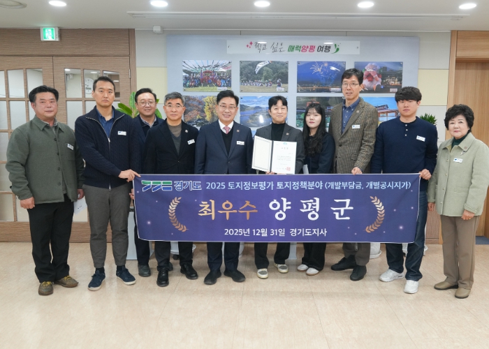 [메이저뉴스]양평군은 경기도가 주관한 ‘2025년 토지정보 종합평가’에서 토지정책 분야(개발부담금 및 개별공시지가) 최우수 기관으로 선정됐다고 밝혔다.