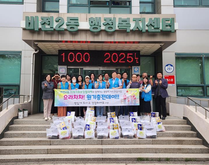 이 행사는 비전2동 지역사회보장협의체에서 매년 지역 내 도움이 필요한 취약계층 가정에 명절 또는 계절에 따라 시기에 맞는 영양 먹거리를 전달하는 행사로, 이번 행사는 경기사회복지공동모금회 지정기탁금 및 위원들의 후원으로 추진했다.