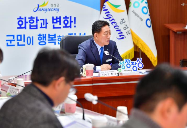 | ▲ 26일 ‘인구감소지역대응위원회’ 회의를 주재 중인 김한종 장성군수. |