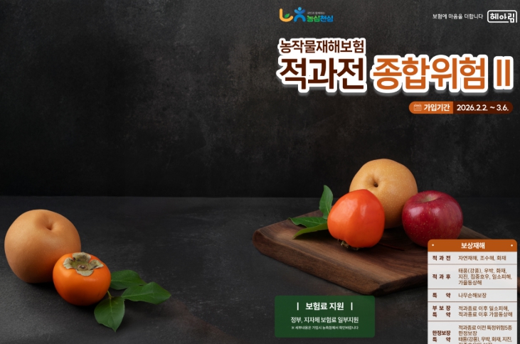 | ▲ 과수4종(사과․배․단감․떪은감) 농작물 재해보험 가입하세요 |