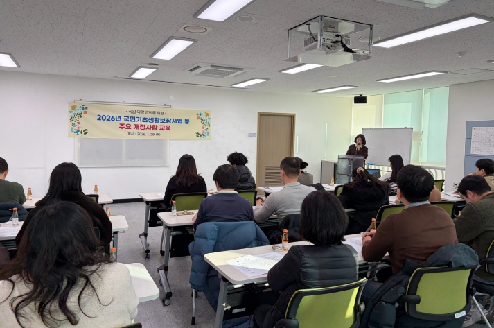 이번 교육은 2026년 기준중위소득 인상에 따른 복지급여별 선정 기준과 주요 지침 개정 사항 및 사례 중심의 실무 대응 방안을 중심으로 진행됐으며, 직원들의 이해도를 높이고 전반적인 복지 분야의 통합적 접근을 통한 업무 효율성 도모에 중점을 두었다.