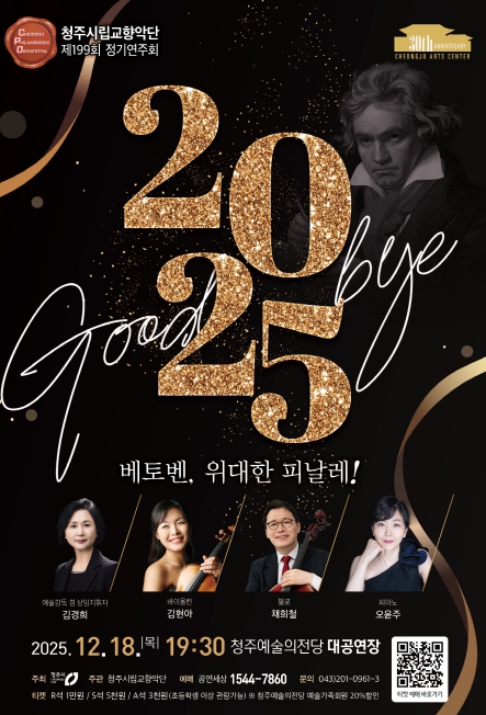 [메이저뉴스]청주시립교향악단은 오는 12월 18일 오후 7시 30분 청주예술의전당 대공연장에서 제199회 정기연주회 ‘Good bye 2025 – 베토벤, 위대한 피날레!’ 공연을 개최한다.