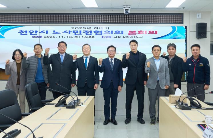위원장인 김석필 천안시장 권한대행 부시장은 “우리나라 노동시장은 정년연장, 노란봉투법 시행 등 큰 변화를 앞둔 만큼 노사민정의 역할이 그 어느 때보다 중요하다”며 “노사민정이 한마음으로 협력해 ‘노사가 상생하는 천안, 일하기 좋은 천안’을 함께 만들어가자”고 말했다