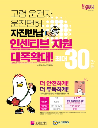 [메이저뉴스]부산시는 안전이 우선되는 사람 중심의 교통안전 환경을 조성하기 위하여 고령자와 사업용 차량의 안전관리 강화에 집중하는 '맞춤형 안전대책'으로 다양한 신규사업들을 추진한다고 밝혔다.