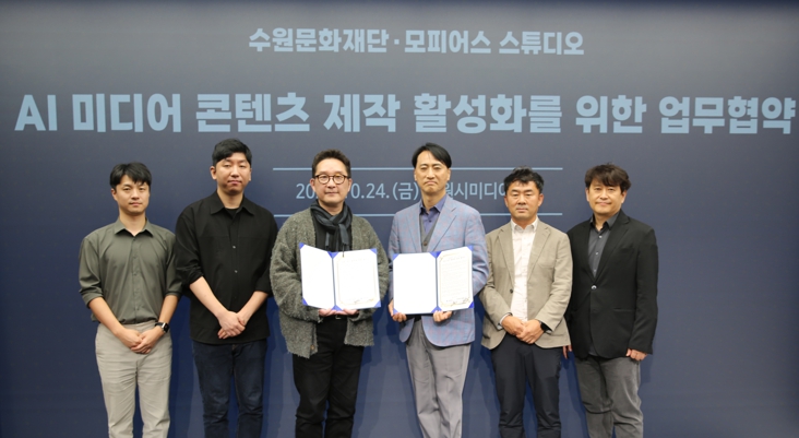 [메이저뉴스]수원문화재단 미디어센터는 지난 24일 모피어스 스튜디오와 ‘AI 기반 콘텐츠 창·제작 협력 체계 구축’을 위한 업무협약(MOU)을 체결했다.