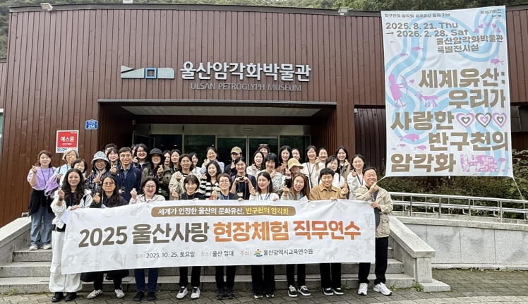 [메이저뉴스] 울산광역시교육연수원(원장 한현숙)은 25일 울주군 대곡리와 천전리 일원에서 유치원, 초중등 교원 40명을 대상으로 ‘울산 사랑 현장 체험 직무연수’를 진행했다.