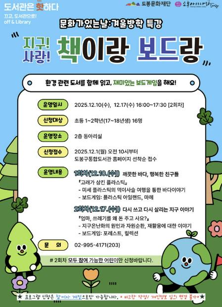 [메이저뉴스]서울 도봉구 도봉아이나라도서관이 겨울방학 특별 프로그램으로 ‘책이랑 보드랑’을 운영한다.
