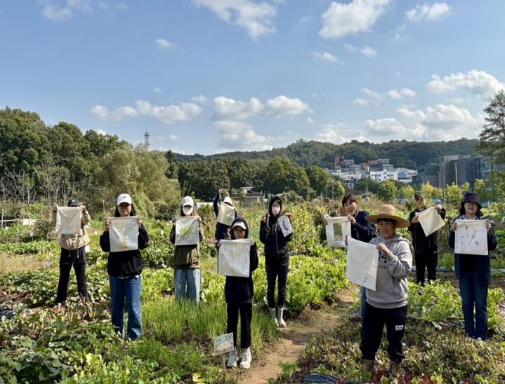 | ▲ 2025년 주민공모사업 ‘실행기’ 참여 주민들이 천가방(에코백)을 들고 기념촬영을 하고 있다 |