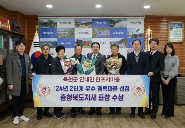 [메이저뉴스]옥천군 안내면 인포리 마을이 2024년 2단계 행복마을사업 우수마을로 선정돼 도지사 표창을 받았다.