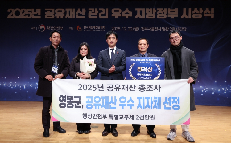 영동군 관계자는 “공유재산 부문 첫 우수 지자체 선정을 시작으로, 앞으로도 공유재산을 체계적이고 효율적으로 관리해 공유재산 분야에서 지속적인 성과를 이어갈 수 있도록 하겠다”고 말했다.