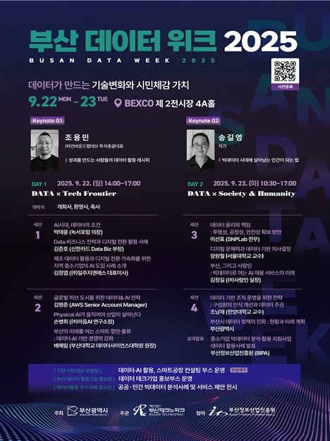 또한, 2일 차에는 부산시 빅데이터혁신센터 사업 참여기업인 ▲허슬러즈 ▲링스업 등이 직접 우수사례를 발표하며, '2025년 중소기업 빅데이터 분석·활용 지원 사업' 등 2025년 시가 추진한 데이터 생태계 조성 성과도 공유한다.