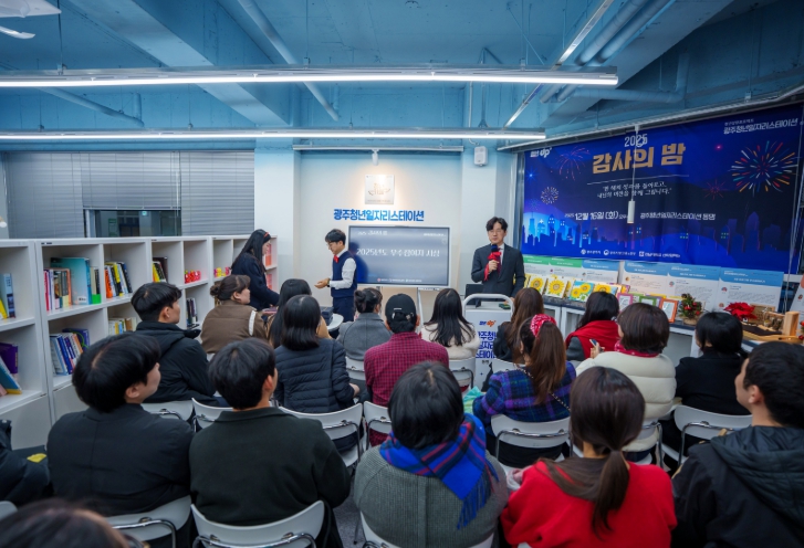 [메이저뉴스]전남대학교 산학협력단 산하 광주청년일자리스테이션 동명이 지난 12월 16일 스테이션 동명에서 연말 성과 공유 행사 ‘2025 감사의 밤’을 열고, 한 해 동안 함께해 온 참여 청년들과 협력 기관 관계자들에게 감사의 뜻을 전했다.