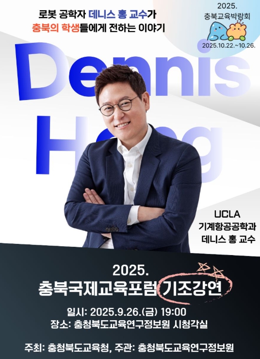 윤건영 교육감은 “충북국제교육포럼은 세계적 석학을 충북에 모시고, 미래교육의 방향과 지속가능한 교육 발전을 논의하는 담론의 장”이라며, “이번 데니스 홍 교수의 기조강연은 충북의 학생들이 글로벌 인재로 꿈을 꾸고, 성장할 수 있는 소중한 기회가 됐기를 바란다.”라고 말했다.