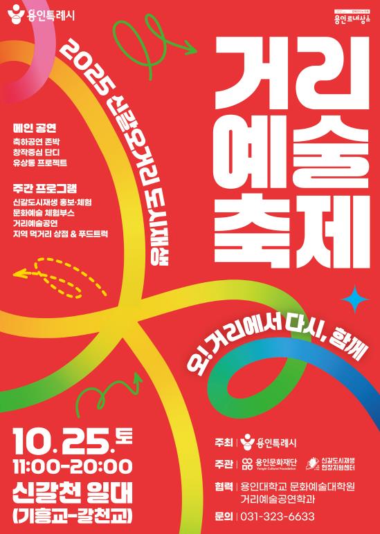 [메이저뉴스]용인특례시는 25일 신갈오거리에 있는 신갈천 일대에서 ‘2025 신갈오거리 도시재생 거리예술축제’를 개최한다고 14일 밝혔다.