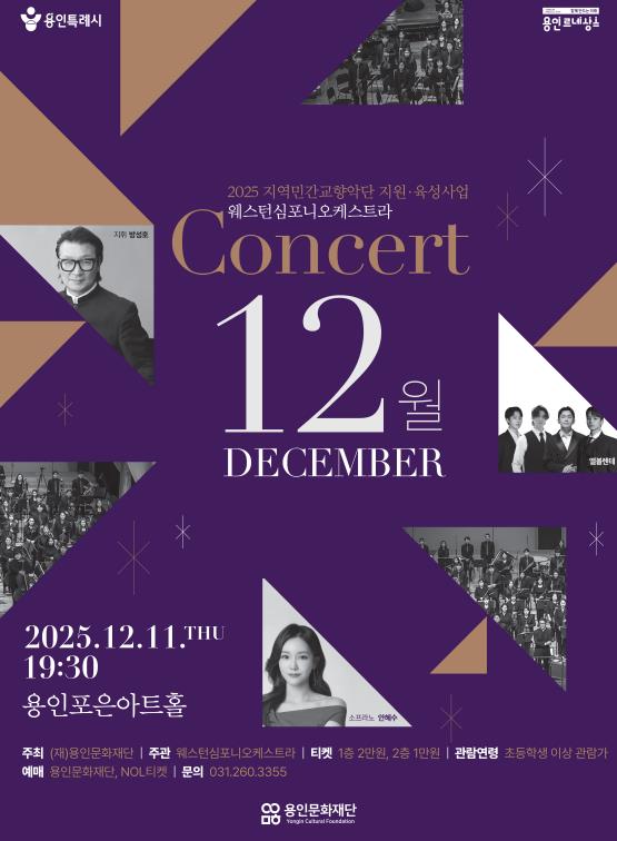 [메이저뉴스]용인문화재단은 오는 12월 11일 오후 7시 30분, 용인포은아트홀에서 웨스턴심포니오케스트라 '콘서트 ‘12월’' 공연을 개최한다.