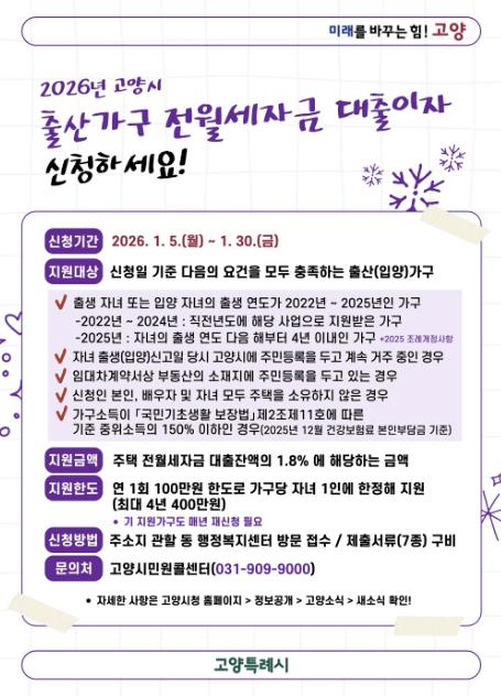 [메이저뉴스]고양특례시가 ‘아이 키우기 좋은 도시’를 목표로 올해 출산·양육 지원을 더욱 강화한다.