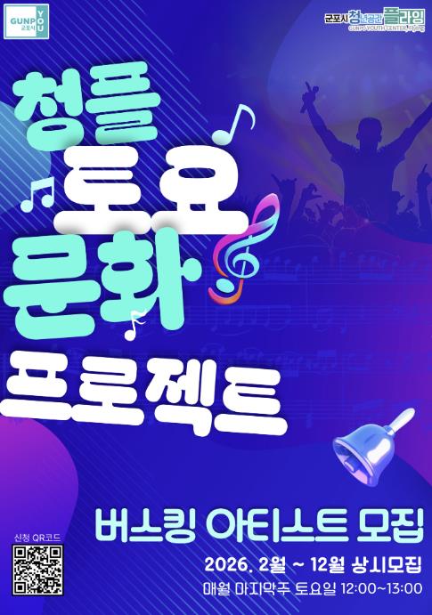 [메이저뉴스]군포시 청년공간 플라잉이 지역 청년 예술가들의 재능 발굴과 문화 네트워크 활성화를 위해 ‘토요 문화 프로젝트’에 참여할 청년 아티스트를 모집한다고 밝혔다. 이번 프로젝트는 청년 예술가들에게는 실질적인 공연 기회를 제공하고 시민들에게는 일상 속 문화 향유의 기회를 확대하기 위해 기획됐다.