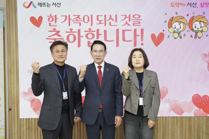 ▲ 원스톱 민원 상담관 2명(가운데는 이완섭 서산시장)