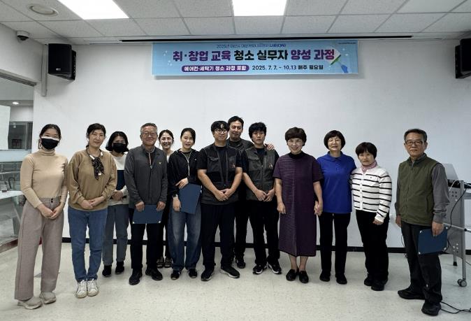 이번 교육은 7월 7일부터 3개월간 진행됐으며, 청소 직무 이론과 실습은 물론 가전 세척 기술까지 익혀 수료생들이 취업 현장에서 전문성과 경쟁력을 갖추도록 했다.