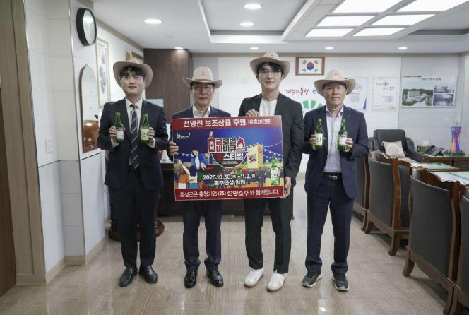 [메이저뉴스]홍성군은 지난 13일, 홍성군청 군수실에서 ㈜선양소주와 ‘2025 홍성글로벌바비큐페스티벌’ 홍보라벨 소주 전달식을 실시했다고 밝혔다.