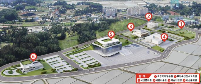 해당 사업은 석남동 286-13번지 일원에 ▲국립국악원 분원 ▲무형유산전수교육관 ▲서산문화원 ▲시립미술관 ▲예술의 전당 ▲서산문학관 6개 시설을 단계적으로 집적화하는 사업이다.