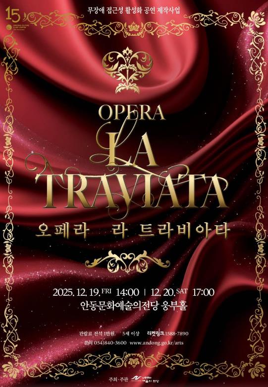 이번 무대에는 소프라노 마혜선(비올레타), 테너 정호윤(알프레도), 바리톤 한명원(제르몽)을 비롯해 이지혜, 이혜린, 전재민, 김대엽, 이상민 등 국내 정상급 성악가들이 출연한다. 또한 디오오케스트라와 안동시립합창단이 함께하며, 음성해설은 심정옥, 수어해설은 정순희·강병규가 맡아 무장애 공연의 완성도를 높인다.