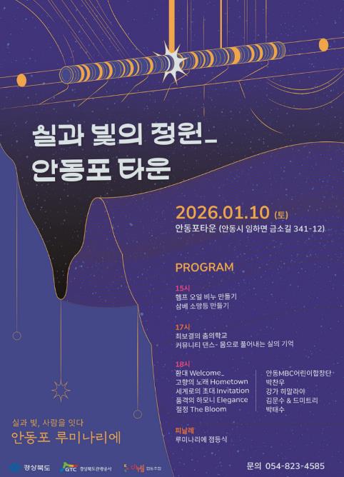 개막식은 1월 10일 오후 3시 안동포타운에서 열리며, 루미나리에 점등식을 비롯해 다양한 공연 프로그램이 함께 진행될 예정이다.