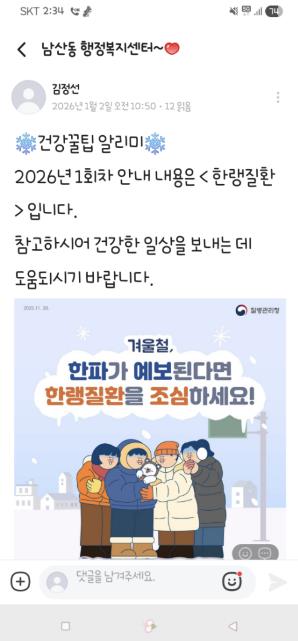이와 같은 생활 밀착형 정보 제공은 주민들이 일상에서 건강 수칙을 자연스럽게 실천하도록 유도하며, 더 나아가 주민 스스로 건강을 돌보고 관리하는 데 큰 도움이 될 것으로 기대한다.
