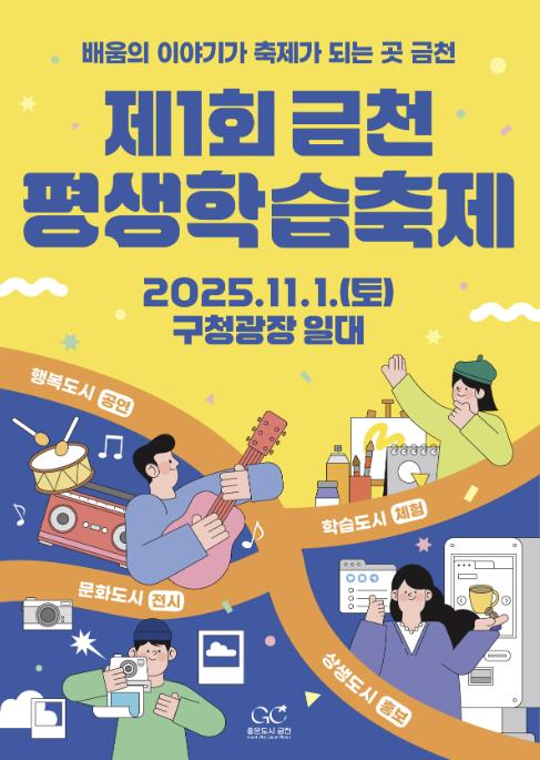축제 공간은 금천구 도시브랜드인 ‘행복도시, 학습도시, 문화도시, 상생도시’ 4개 구역으로 나뉘어, 공연·체험·전시·홍보 등 51개 프로그램이 운영된다. 관람객들은 각 도시를 여행하듯 공간을 이동하며 다양한 프로그램을 체험하고, 스탬프를 모으면 학습 이벤트 참여 기회를 얻을 수 있다.