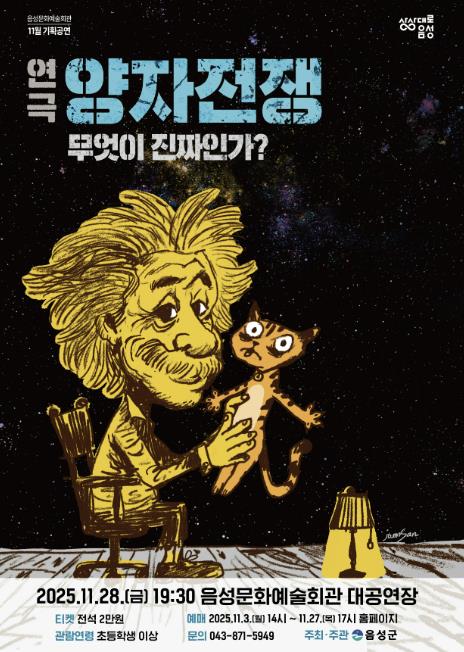 [메이저뉴스]음성군은 오는 11월 28일 음성문화예술회관 기획공연으로 연극 '양자전쟁'을 선보인다고 밝혔다.