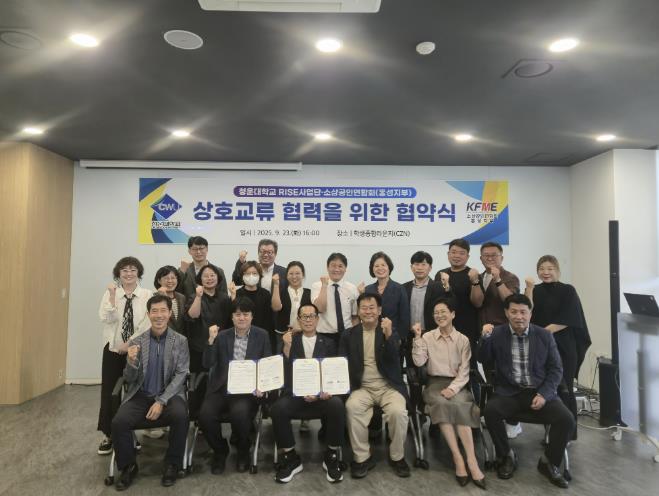 [메이저뉴스]홍성군은 지난 23일 청운대학교 학생종합라운지에서 소상공인연합회 홍성지부와 청운대학교 RISE사업단이 지역 소상공인 및 청년 창업 생태계 조성을 위한 상호협력 업무협약(MOU)을 체결했다고 밝혔다.
