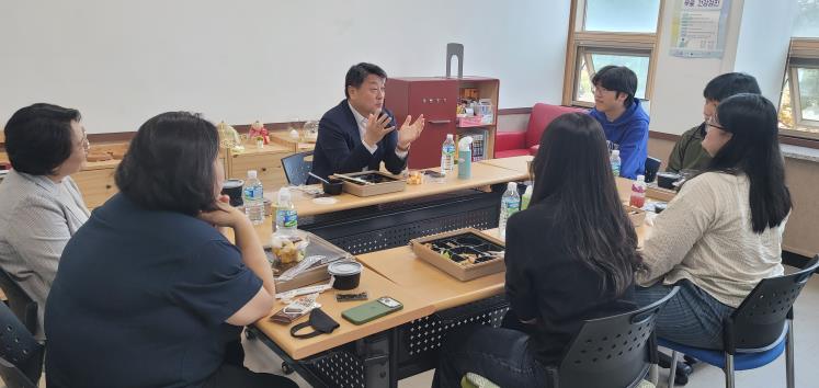 이번 간담회에는 김택중 부군수, 가족지원과장, 학교 밖 청소년 4명, 학교밖청소년지원센터 팀장이 참석했으며, 함께 점심 도시락을 나누는 가운데 자유로운 대화와 의견을 나눴다.