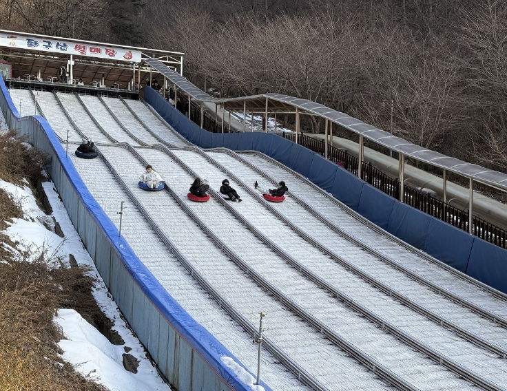 썰매장은 6개 레인, 총연장 82m 규모의 슬로프로 구성돼 튜브 썰매를 이용한 속도감 있는 체험이 가능하다.