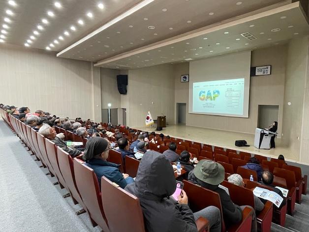 이번 교육은 GAP 인증 전 필수 이수 사항으로, 갱신 농가의 경우 2년에 1회, 2시간 기본 교육을 받아야 한다.