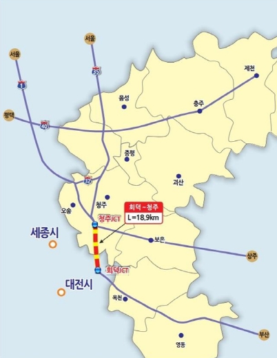 이재덕 충북도 도로과장은 “증평~호법, 회덕~청주 고속도로 확장사업이 예비타당성조사 대상사업으로 신규 선정된 것은 사업추진 당위성과 도민들의 염원이 반영될 결과”라며 “본격적인 사업추진을 위해서 예비타당성조사가 통과될 수 있도록 적극 노력하겠다.”고 밝혔다.