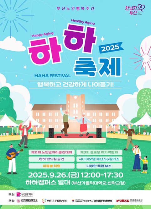 [메이저뉴스]부산시는 전국 최초로 지역대학과 협력해 조성 중인 하하캠퍼스(부산가톨릭대학교 신학교정) 일대에서, 내일(26일) 정오(12시)에 어르신들을 위한 축제의 장인 '2025년 하하(HAHA) 페스티벌'을 개최한다고 밝혔다.