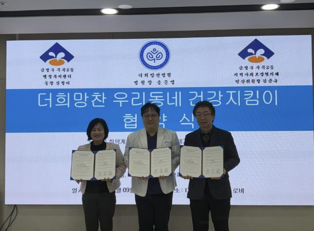 신정미 부곡2동장은“지역사회 의료 협력 체계 구축에 동참해 주신 더희망찬병원과 지역사회보장협의체에게 감사를 전하고 이번 협약으로 의료 자원과 취약계층을 연결하는 민·관 협력 통로를 확대해 나가는 계기가 되기를 바란다.”라고 밝혔다.