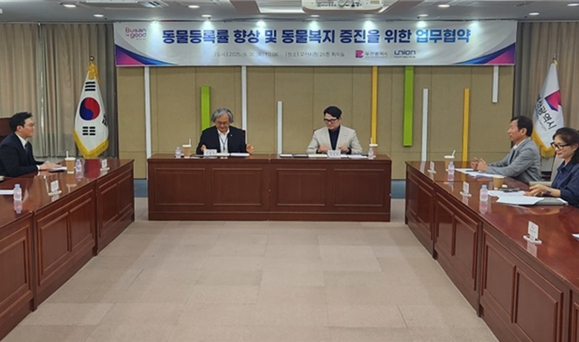 [메이저뉴스]부산시는 동물등록률 향상 및 동물복지 증진을 위해 어제(30일) 오전 10시 시청 26층 회의실에서 '㈜유니온바이오메트릭스'와 업무협약(MOU)을 체결했다고 밝혔다.