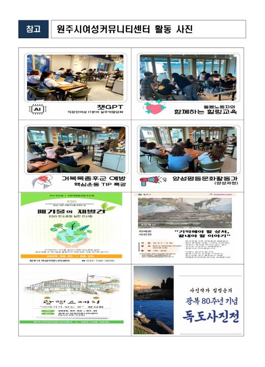 | ▲ 원주시여성커뮤니티센터, 9·10월 다채로운 교육 프로그램 운영 |