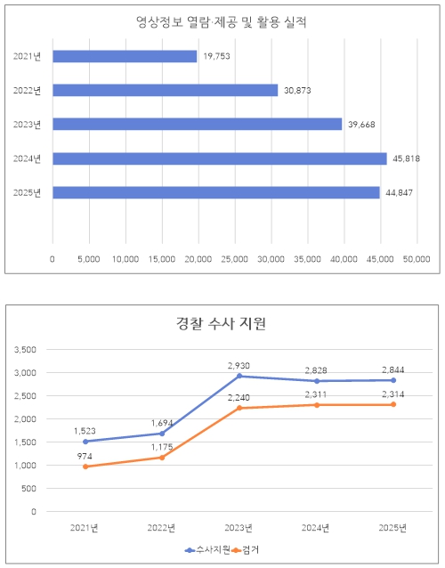 특히 경찰 수사 지원은 총 11,819건으로, 이 가운데 9,014건이 실제 검거로 이어져 높은 범죄 해결 기여도를 기록했다.