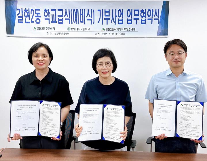 [메이저뉴스]서울 은평구는 갈현2동과 지역사회보장협의체가 지난 19일 선일여자고등학교 교장실에서 ‘학교급식 예비식 기부사업’을 추진하기 위한 업무협약을 체결했다고 밝혔다.