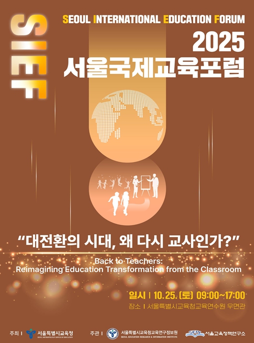 [메이저뉴스]서울특별시교육청 산하 서울특별시교육청교육연구정보원 교육정책연구소는 오는 10월 25일 서울특별시교육청교육연수원에서 “대전환의 시대, 왜 다시 교사인가(Back to Teachers: Reimagining Education Transformation from the Classroom)”를 주제로 2025 서울국제교육포럼(Seoul International Education Forum, 이하 SIEF 2025)을 개최한다.